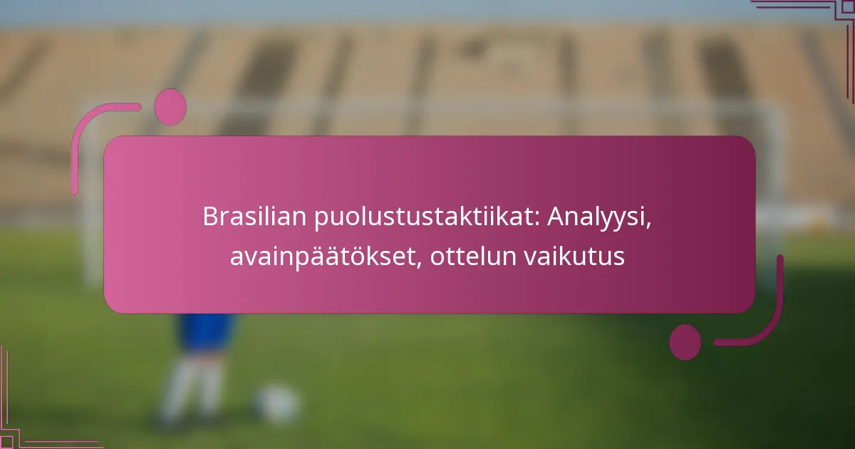 Brasilian puolustustaktiikat jalkapallossa ovat luonteenomaisia rakenteellisille muodostelmille ja strategisille pelaajaroolille, jotka mahdollistavat kestävän ja mukautuvan puolustuksen. Valmentajien tekemät keskeiset päätökset, mukaan lukien taktiset säädöt ja vaihdot, näyttelevät ratkaisevaa roolia joukkueen suorituksessa erilaisia vastustajia vastaan. Tämän puolustuksen tehokkuus riippuu vahvasta viestinnästä, yksilötaitojen tasosta ja kyvystä reagoida vaihtelevaan pelitilanteeseen.