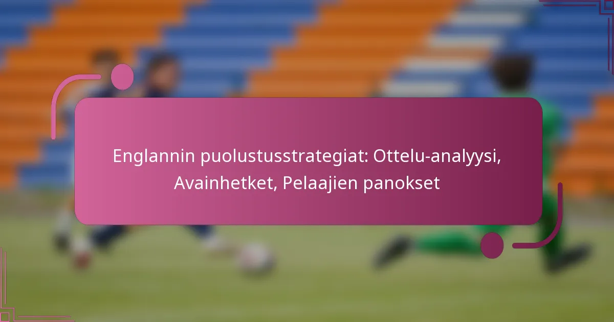 Englannin puolustustrategiat perustuvat rakenteellisiin muodostelmiin ja määriteltyihin pelaajaroolihin, mikä mahdollistaa joukkueen tehokkaan reagoinnin erilaisiin hyökkäysuhkiin. Viimeisimmät otteluanalyysit paljastavat keskeisiä hetkiä, jotka korostavat sekä heidän puolustuksensa vahvuuksia että heikkouksia, tuoden esiin yksittäisten pelaajien panosten kriittisen roolin vahvan puolustuslinjan ylläpitämisessä. Vahvojen esitysten ja strategisen päätöksenteon kautta Englanti pyrkii luomaan yhtenäisen joukkueen, joka kykenee kestämään paineen alla.