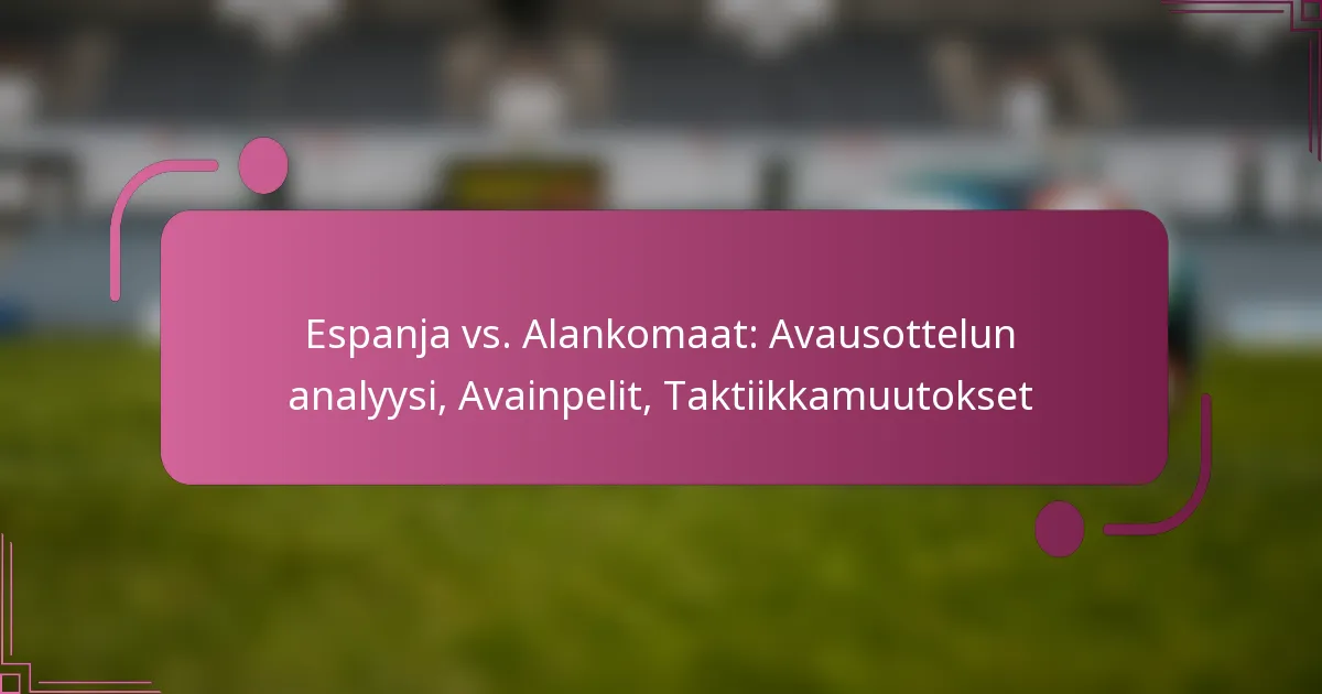 Espanjan ja Alankomaiden ottelussa oli useita keskeisiä hetkiä, jotka vaikuttivat pelin lopputulokseen. Avainpeleihin kuului ratkaisevia maaleja, merkittäviä puolustustaktiikoita ja vaikuttavia vaihdoksia, jotka muovasivat ottelun dynamiikkaa.